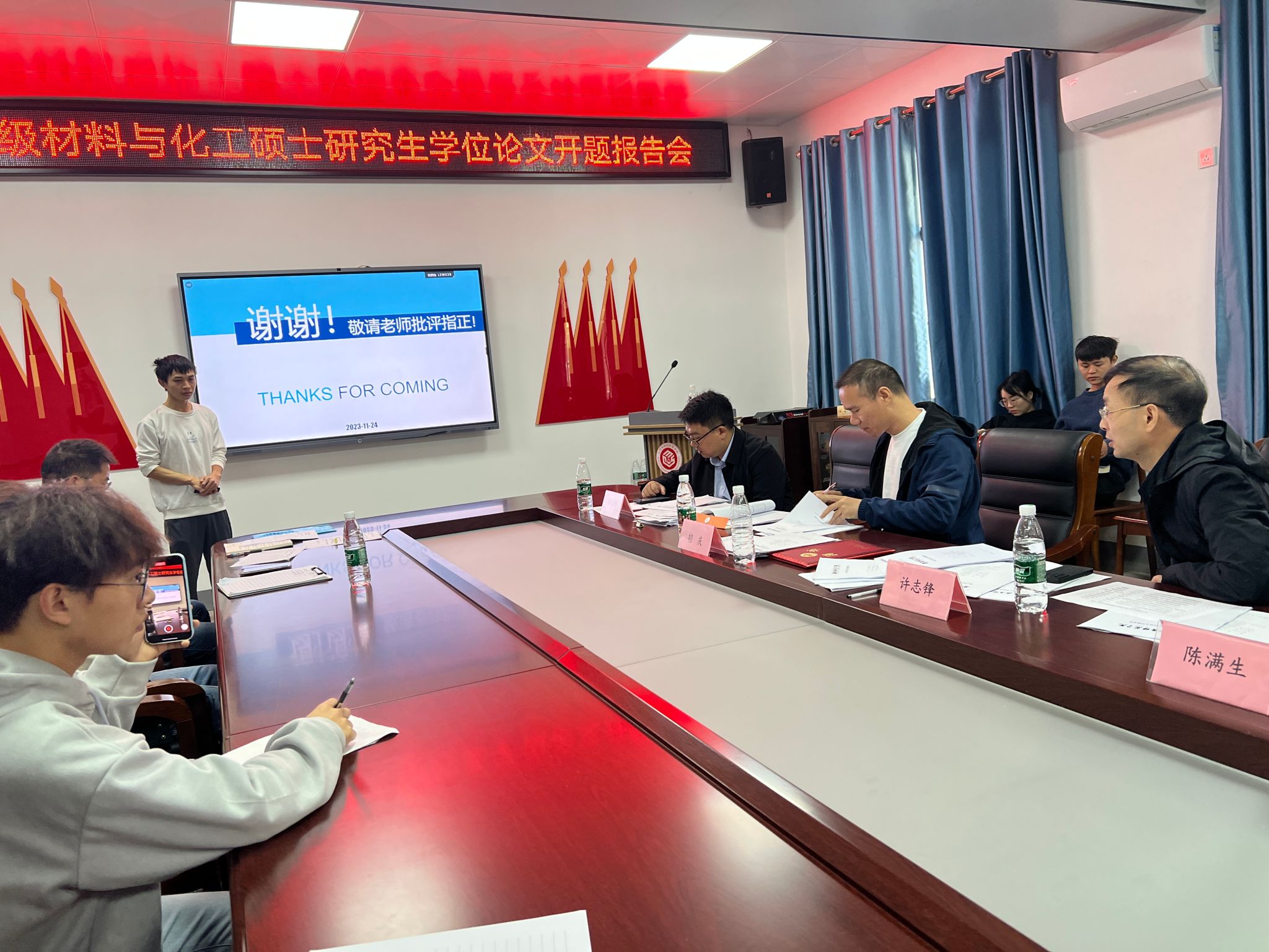 2022级材料与化工硕士研究生学位论文开题报告会于20231124日上午9点在西校区化学楼105会议室举行。本次开题报告会由材料与化工校外合作导师胡庆博士任评审小组组长,许志锋教授、陈满生教授、李俊华教授、孙俊彬副教授任评审小组成员,朱小明博士担任答辩秘书。22级材料与化工研究生参与本次开题报告会,部分老师、21级和23级材料与化工硕士研究生参与旁听。