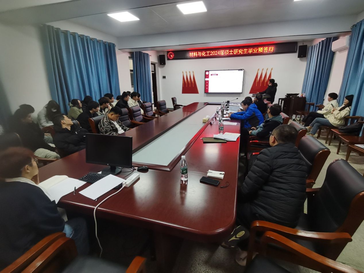 l9193永利于2024年3月13日下午3点在化材楼105会议室举行2024届材料与化工硕士研究生学位论文预答辩。预答辩由许志锋教授、刘梦琴教授、陈满生教授、李俊华教授和孙俊彬副教授任评审小组专家,朱小明博士担任预答辩秘书。21级硕士研究生均参加预答辩,部分研究生导师、在读硕士研究生参与旁听。