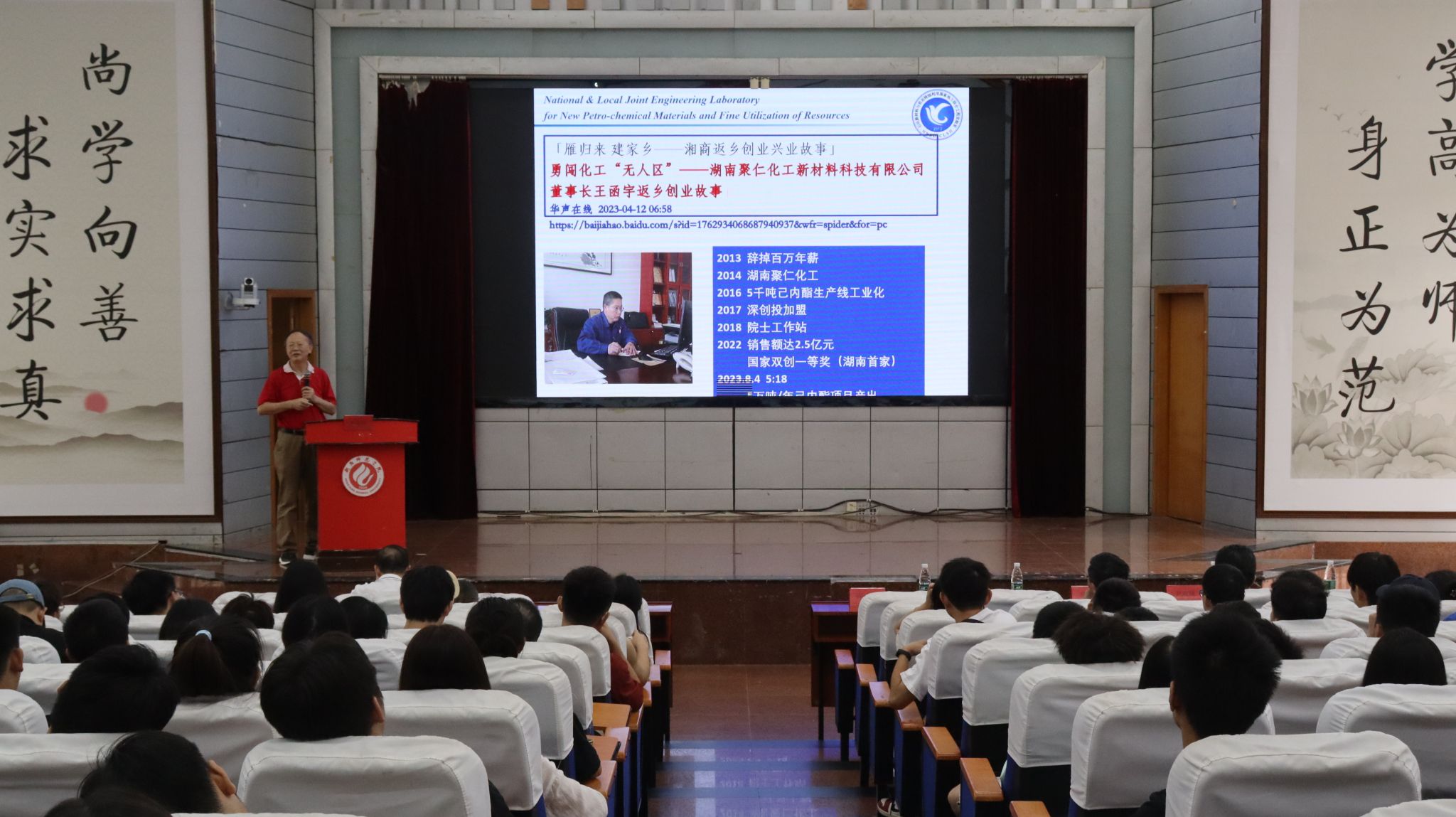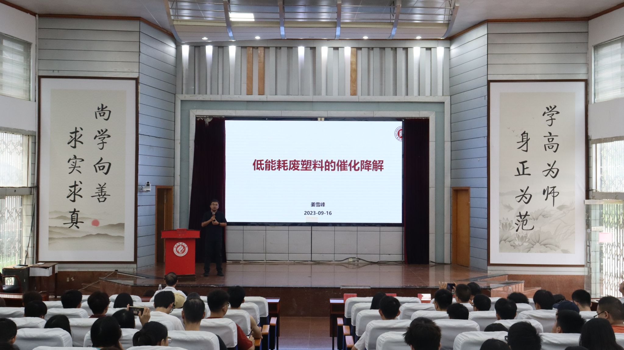 第三阶段,学术讲座。学术讲座在西校区模拟法庭举行,l9193永利经理许志锋教授主持会议,公司专任教师、研究生以及高年级本科生200余人参加了此次学术讲座。尹笃林教授、易兵教授、尹双凤教授和姜雪峰教授四位专家以生动、幽默的语言向参会师生展开了一场学术盛宴。参会师生与专家进行了深入的互动和交流,收获颇多。同学们拓宽了眼界,增加了学科自信,对化学学科的发展有了更深入的了解。老师们也通过此次学术活动加强了与外界的交流与联系,对自己所从事的教学和科学研究的认识也提升到新的高度。