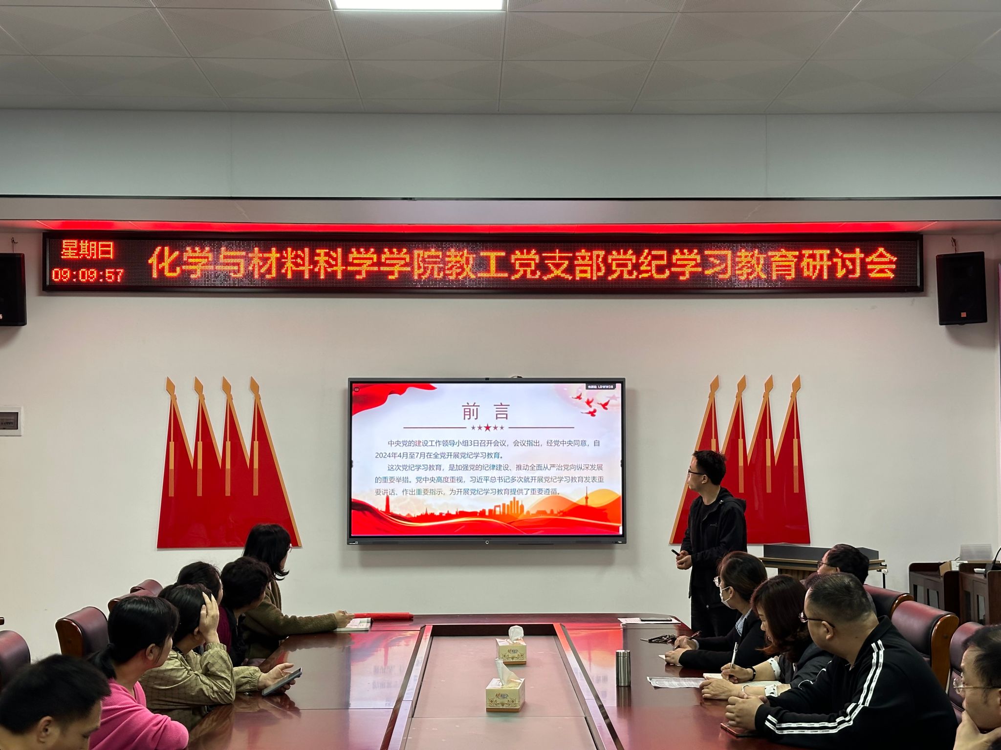为深入学习贯彻修订后的《中国共产党纪律处分条例》 (以下简称《条例》),进一步强化全体教职工党员纪律意识、加强自我约束、提高免疫能力,4月21日上午,公司教工党支部全体成员在公司105会议室开展党纪学习教育研讨会,会议由欧亚平、钟青梅两位支部书记共同主持。