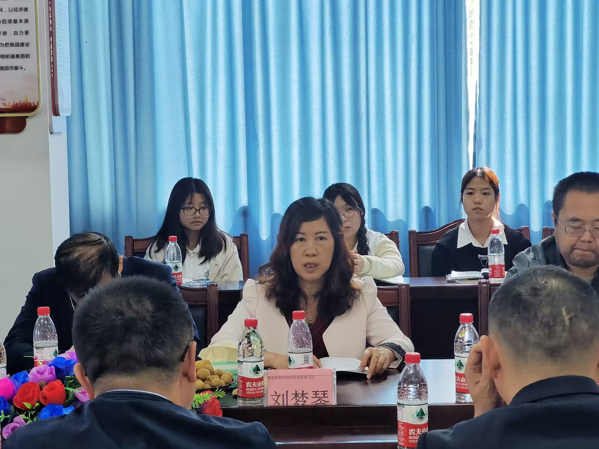 为深入了解公司2020级化学师范专业1班员工教育实习情况,督促实习生完善过程性材料,加强公司与实习基地之间联系,2023年10月30日,我院总支书记刘梦琴、经理许志锋、副经理付伟伟、孙俊彬、办公室主任邓胤龙等一行人前往衡阳市第十五中学,对公司2020级师范生教育实习工作进行检查,受到了衡阳市第十五中学董事长刘家彪的热情接待,并全程陪同检查。