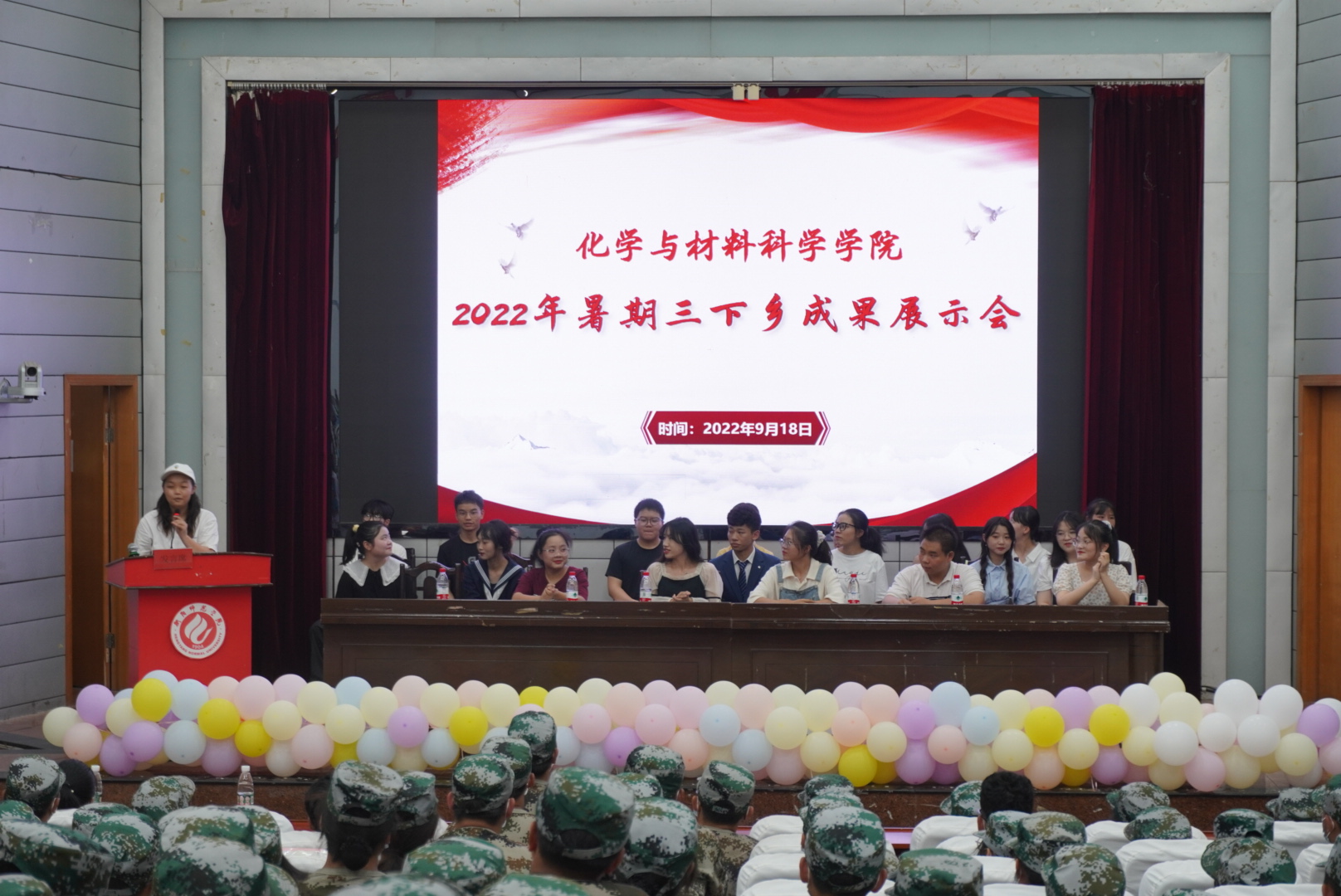 大会的第一个环节是2022年暑期“三下乡”社会实践活动汇报,本次活动在公司老师和同学们的共同努力下取得了优异的成绩。通过团委副书记陈镜姣同学对三下乡的介绍,新生们初步了解到了此次三下乡活动的开展情况。通过志愿者代表邓鑫蕾“三下乡”实践心得分享,新生们进一步理解了“进步”“互助”的志愿服务精神,体会到了三下乡志愿服务者“不怕吃苦”“敢于担当”的可贵品质。