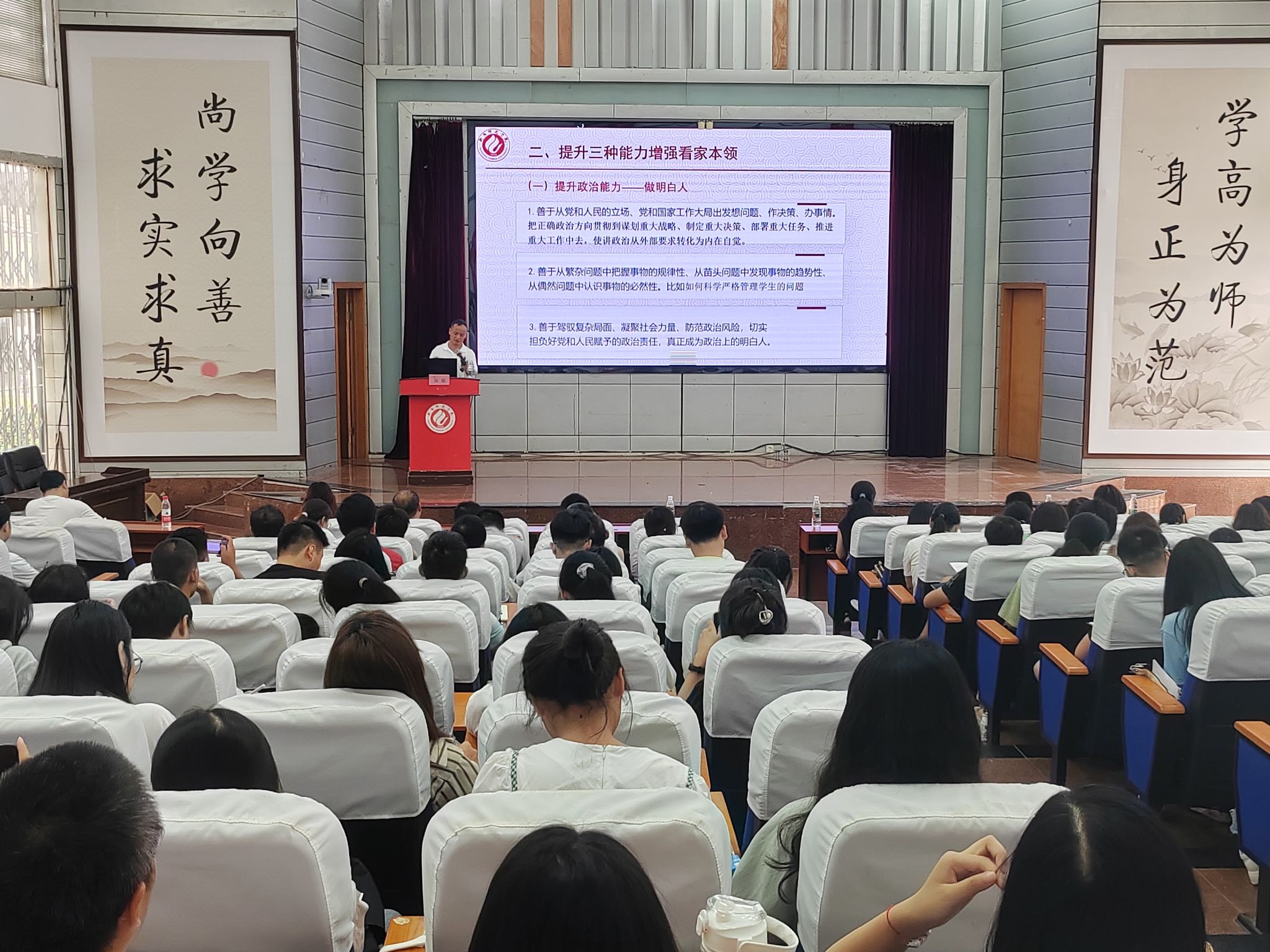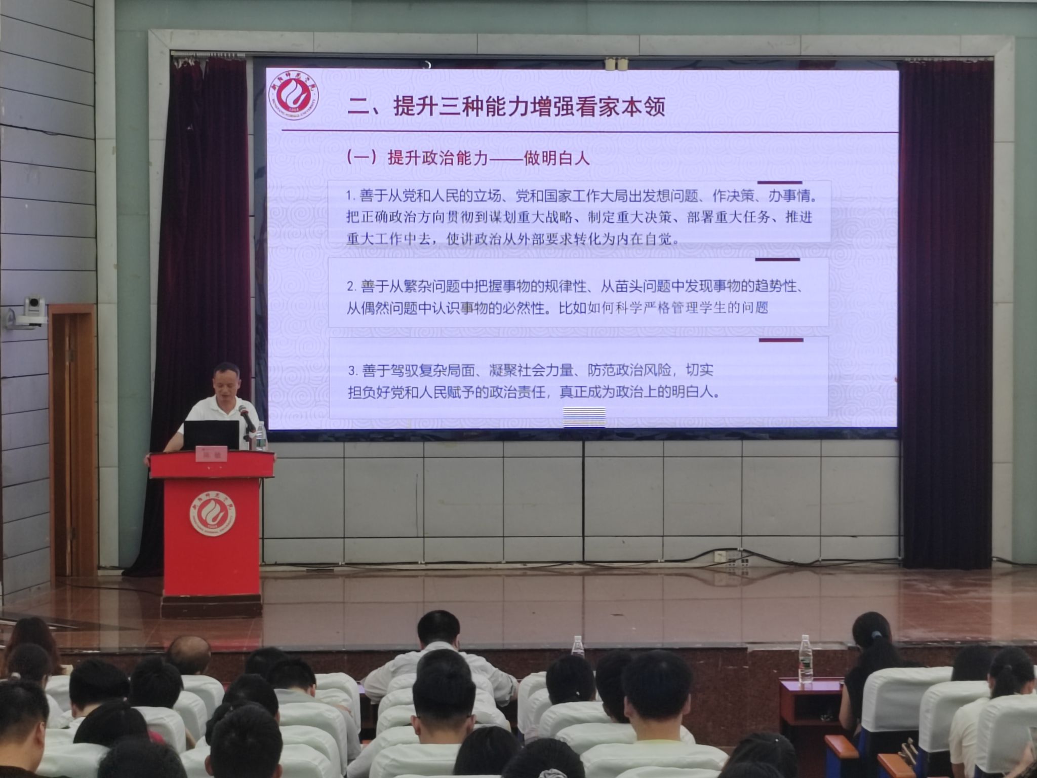 党课分三个部分:(一)科学认识和准确把握教育的本质。陈敏阐述了目前我国国内外的政治环境,提出了教育的首要问题,即为谁培养人、培养什么人、怎样培养人,指出教育的本质是立德树人,教师不仅仅是传授知识,更重要的是塑造灵魂,决不能培养出“长着中国脸,不是中国心,没有中国情,缺少中国味”的人。陈敏强调,中国的教育,要扎根中国大地办教育,必须传承中国传统文化、掌握中国历史、面向中国未来,只有这样,才能办好中国教育;(二)提升三种能力,增强看家本领。陈敏指出,首先要提升政治能力,做明白人。要从党和人民的立场、国家大局出发想问题、办事情,要善于从繁杂问题中把握事物的规律性、从偶然事件中认识事物的必然性。其次,提升思维能力,做智慧人。以六个必须坚持为原则,即人民至上、自信自立、守正创新、问题导向、系统观念、胸怀天下,在具体工作中善于把握事物本质,增强工作科学性,善于把握发展规律,增强工作预见性,善于把握工作关键,增强工作主动性。最后,提升实践能力,做能干人。学习最终目的是提高自身素质和能力,要在实际工作中,充分发挥出自身潜力,把工作做细、做实、做完美;(三)遵守“五律”,守正创新。即把握规律、遵守法律、服从纪律、接受他律、强化自律,各方面严格要求自己,自珍自省,沉下心来学、静下心来悟,补足精神之钙、把稳思想之舵,筑牢依法治校之基、做到学思用贯通、知信行统一,全面促进、推动公司高质量发展。