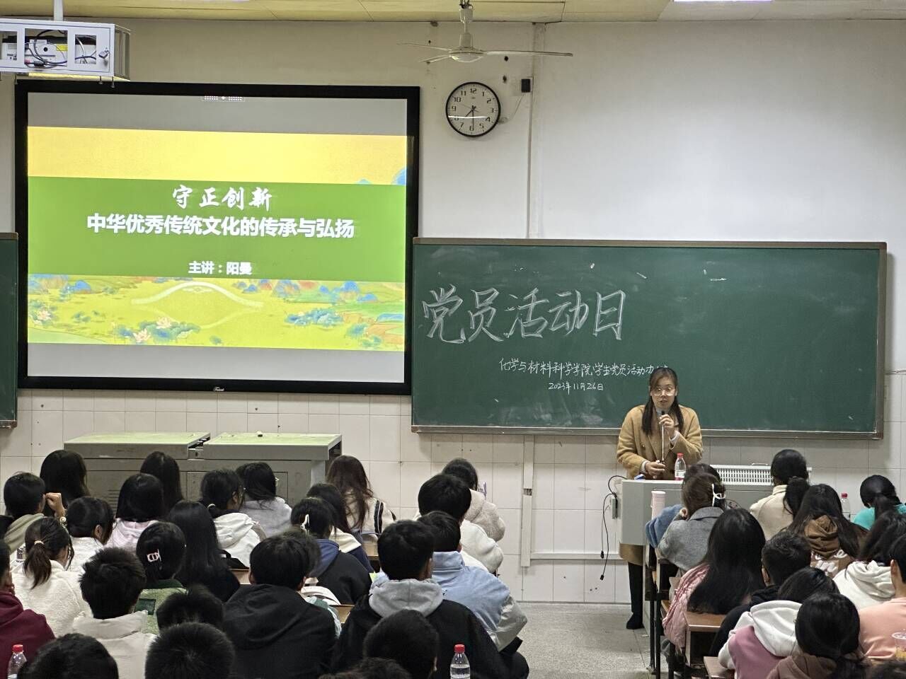 2023年11月26日晚,公司本学期第七次党员活动日讲座在行知楼601进行,公司党总支副书记阳曼老师以《守正创新,中华优秀传统文化的传承与弘扬》为题为全体员工党员和入党积极分子授课。