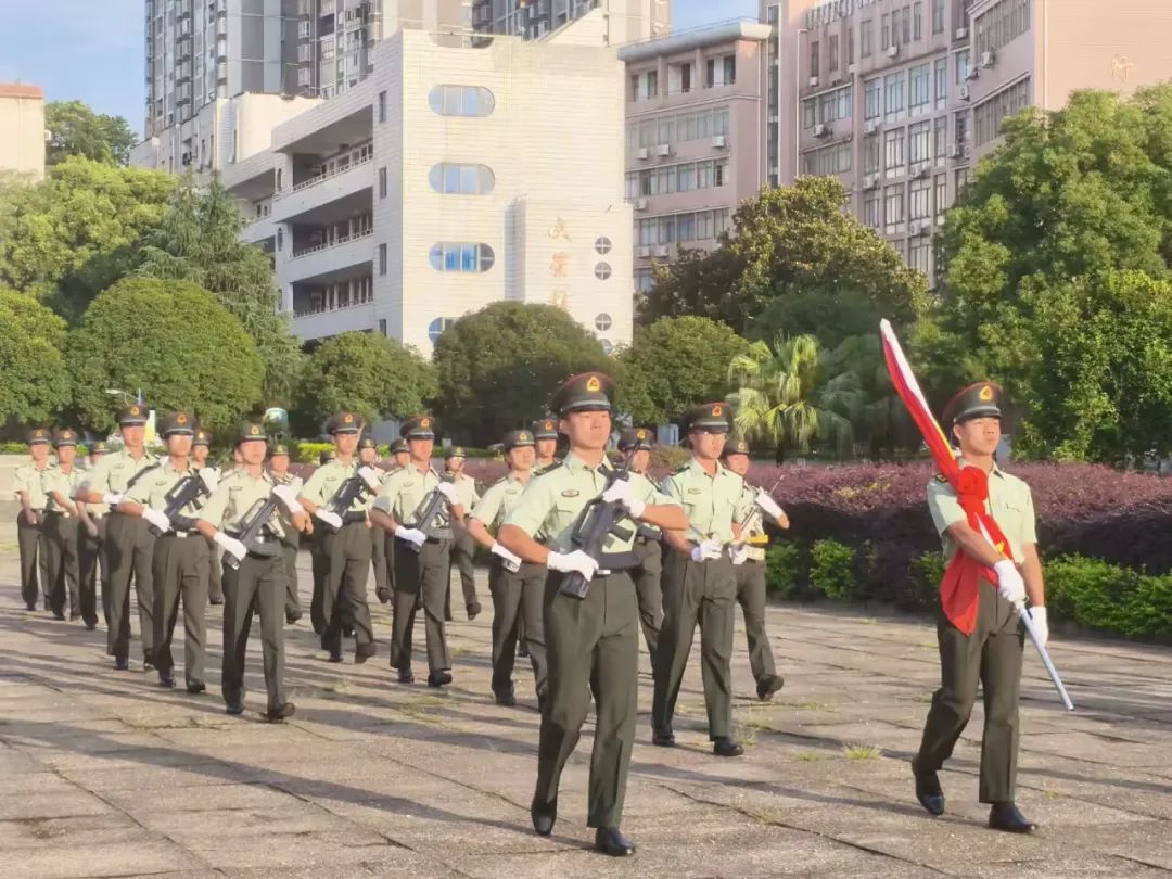 晨曦微亮,柔和的光线洒满新世纪广场。参加升旗仪式的员工整齐列队,教导队的队员们精神抖擞,护卫着五星红旗稳步向前。步伐坚定有力,每一步都透着对祖国的敬重。国歌响起,激昂的旋律在广场上空回荡。红旗迎风飘扬,仿佛在诉说着祖国的发展历程。这一瞬间,爱国之情在每个人心中升腾,激励着我们以青春之我,勇担时代重任,在知识的殿堂里求索奋进,在青春的赛道上拼搏向前,为祖国的繁荣富强积聚力量。