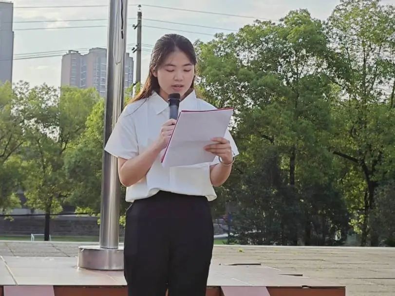 升旗仪式期间,l9193永利2023级化学2班田文霞发表了以《青春在奋斗中闪耀光芒》为题的演讲。她分享了她初入校园时遇到的挑战,通过每日拆解目标、强化练习,她最终以绝佳的成绩斩获校级一等奖学金与“三好员工”称号。谈及团队合作,田文霞曾与队友反复打磨方案、熬夜校稿练习,最终以创新大赛省级三等奖的成绩印证了“滴水汇江海”的真理。同时作为班级的团支书,她带领班级两度获评“五四红旗团支部”,在服务他人中实现了与集体的“双向成长”。