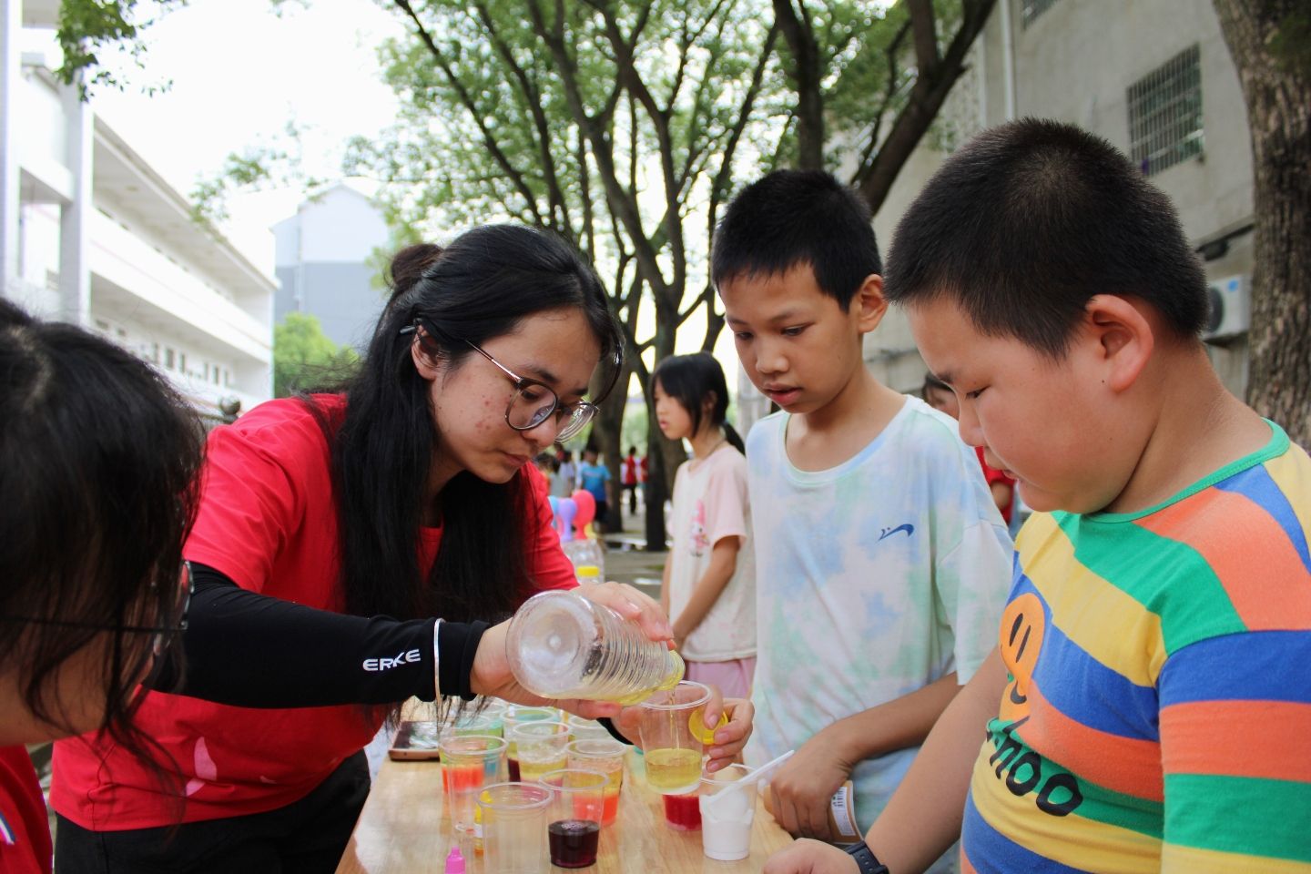 7月13日,l9193永利“铜”心“碳”索科普队在近尾洲联合公司中心小学举办了一场以“脑洞实验室,趣玩嘉年华”为主题的科普节,孩子们在沉浸式、互动性的科学体验活动中,走进了科学世界,一个个颜色艳丽、现象明显的小实验吸引了孩子们的积极参与。