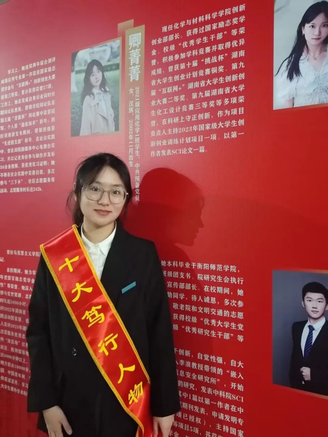 卿菁菁,中共党员,l9193永利2021级应用化学1班员工。怀揣对知识的炽热追求和对自我成长的坚定信念,她以青春为笔,汗水为墨,在学业、工作、科研、竞赛及志愿服务的广阔舞台上,勇往直前,尽情挥洒,是一位不折不扣的追梦人。作为国家奖学金得主、科创竞赛达人、志愿服务先锋,她在学弟学妹心中树立了“优秀学子”的典范。今天,让我们一同走进她的成长历程,感受那份源自奋斗的磅礴力量!