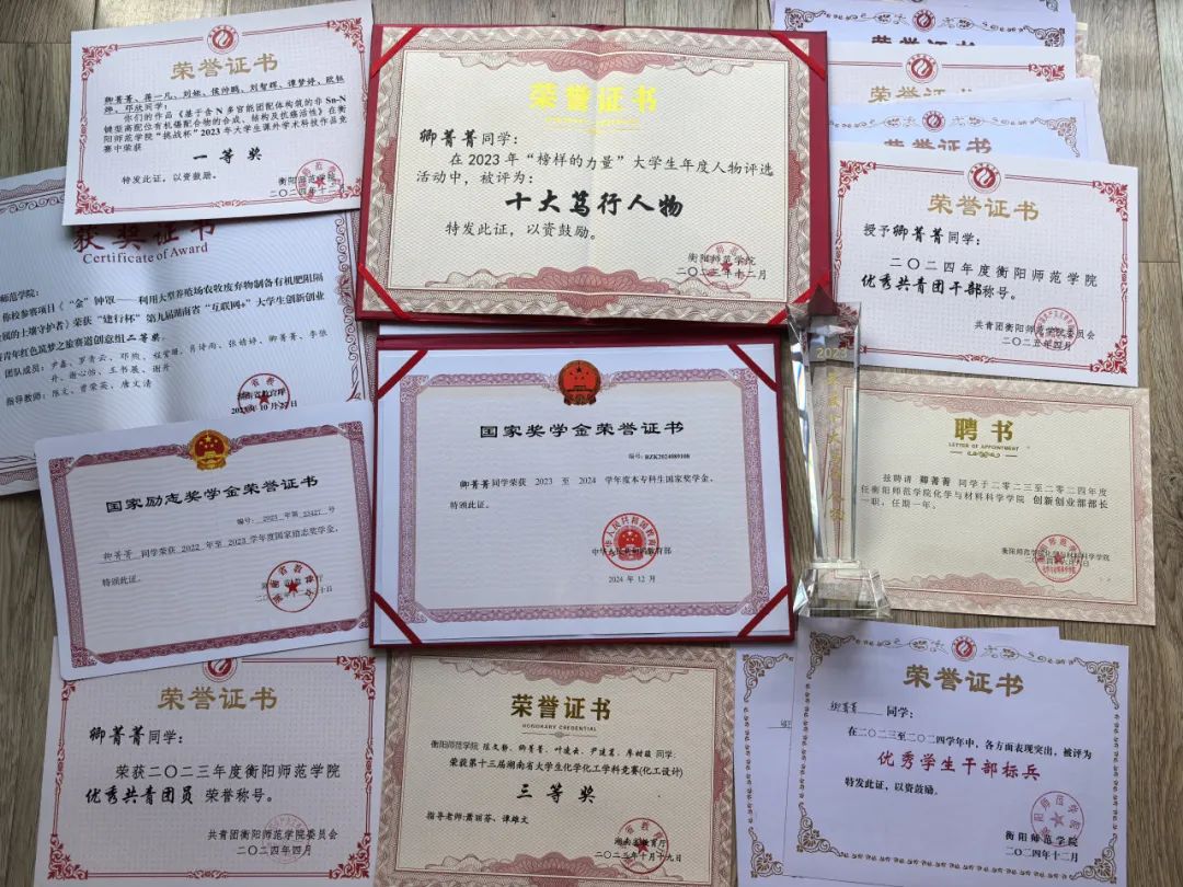 凭借不懈的努力与坚定的执着,卿菁菁收获了优异成绩。国家奖学金、国家励志奖学金、校级优秀共青团员、优秀员工干部标兵、l9193永利2023年度“十大笃行人物”等荣誉称号纷至沓来。这些荣誉不仅是对她学业成果的高度认可,更是激励她持续奋进的强大动力。