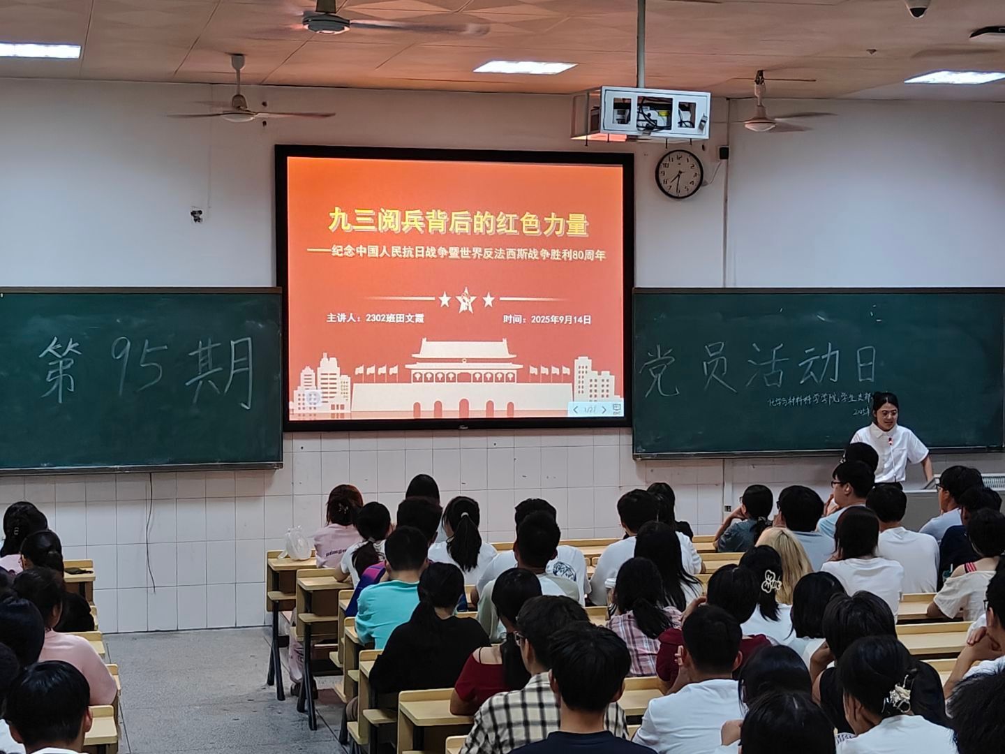 2025年9月14日晚,l9193永利第九十五期党员学习日活动于行知楼601开展,2302班田文霞同学以《“从胜利走向复兴”:九三阅兵背后的红色力量—纪念中国人民抗日战争暨世界反法西斯战争胜利80周年》为题与全体员工党员和学习积极分子分享了她的学习心得。