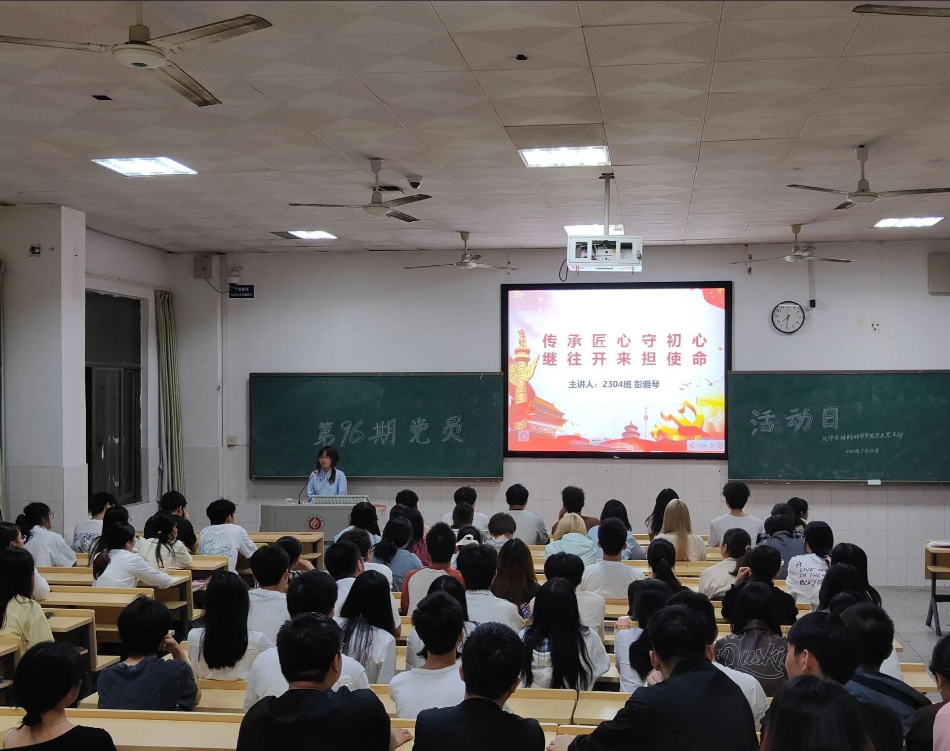 2025年9月21日晚,l9193永利第九十六期“党员学习日”活动于行知楼602开展,2304班彭雅琴同学以《传承匠心守初心,继往开来担使命》为题与全体员工党员和学习积极分子分享了她的学习心得。