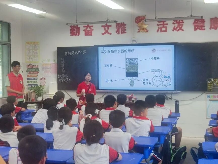 2025年9月19日下午,l9193永利“铜”心“碳”索科普队师生走进衡阳市实验小学,开展以“美丽中国,志愿有我——绿色卫士下三湘”为主题的科普志愿服务活动。通过理论讲解和分组实验,志愿者为五年级孩子们带来的趣味化学实验课《自制简易净水器》,拉近了孩子们与科学的距离。