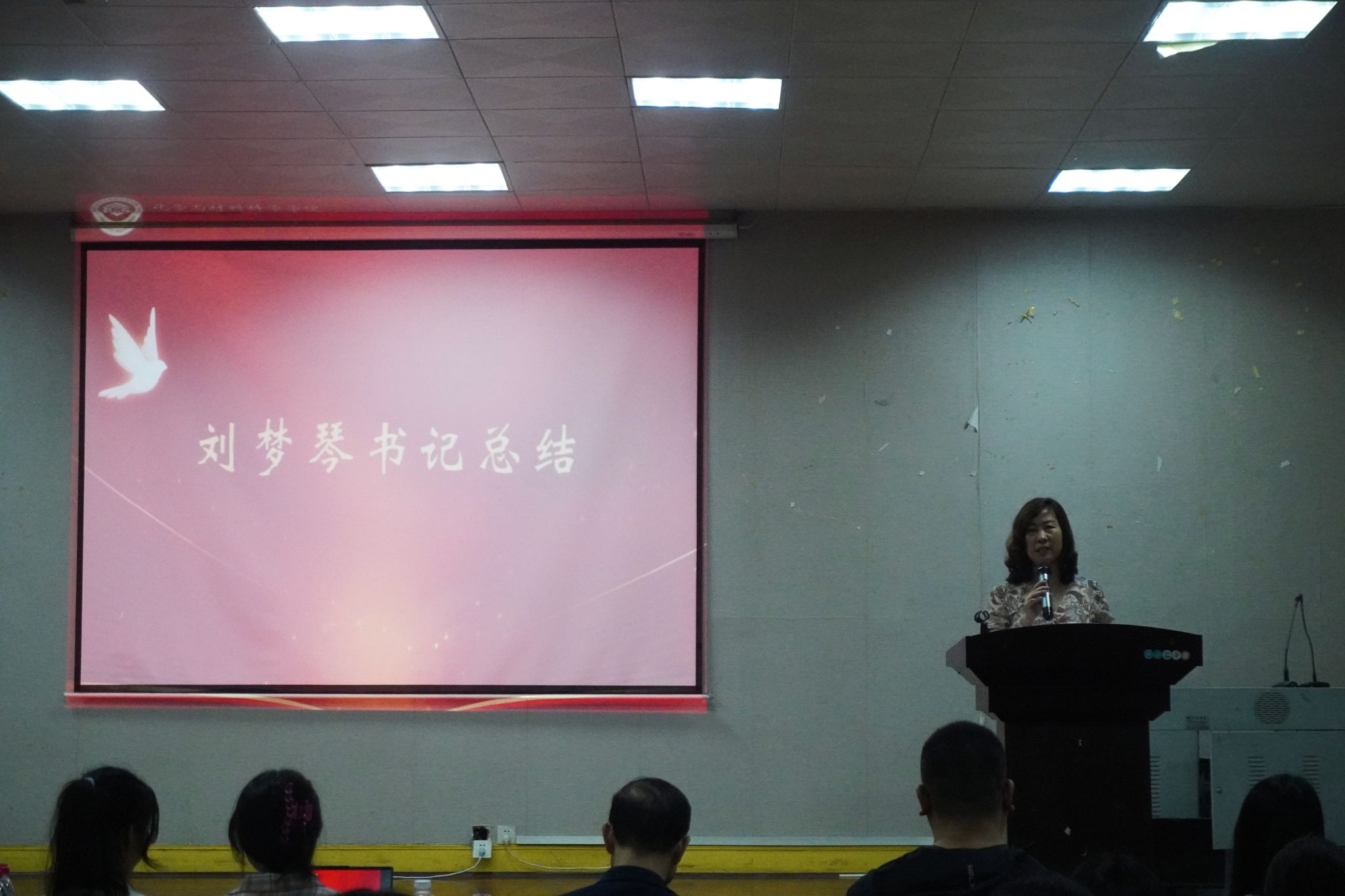 仪式第二阶段由汇翔公司人事经理明玲艳进行宣讲。她向20级和21级的员工详细介绍了浙江汇翔新材料科技股份有限公司的企业现况、企业目标、企业优势以及其招聘需求等信息,对公司有前往汇翔公司实习和就业意向的同学表示热烈欢迎。