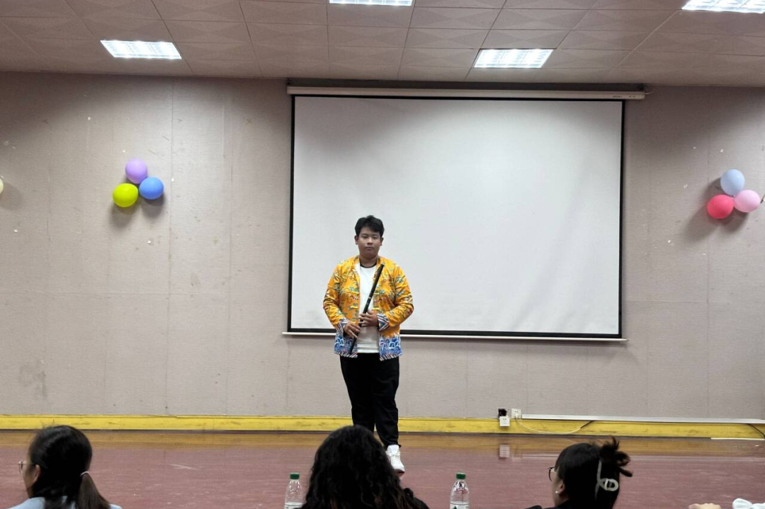 活动在一曲激情四射的舞蹈《爱的主打歌》中拉开帷幕,决赛将进行个人话题和团体项目两个环节的比拼。首先进行的是个人话题环节,参赛选手需在决赛现场对指定话题进行时长三分钟的展示。2404班朱楚涵凭借其深厚的知识储备和扎实的主持技巧,对苏轼的一生进行了精彩的解说,获得了观众的热烈响应和广泛赞赏。