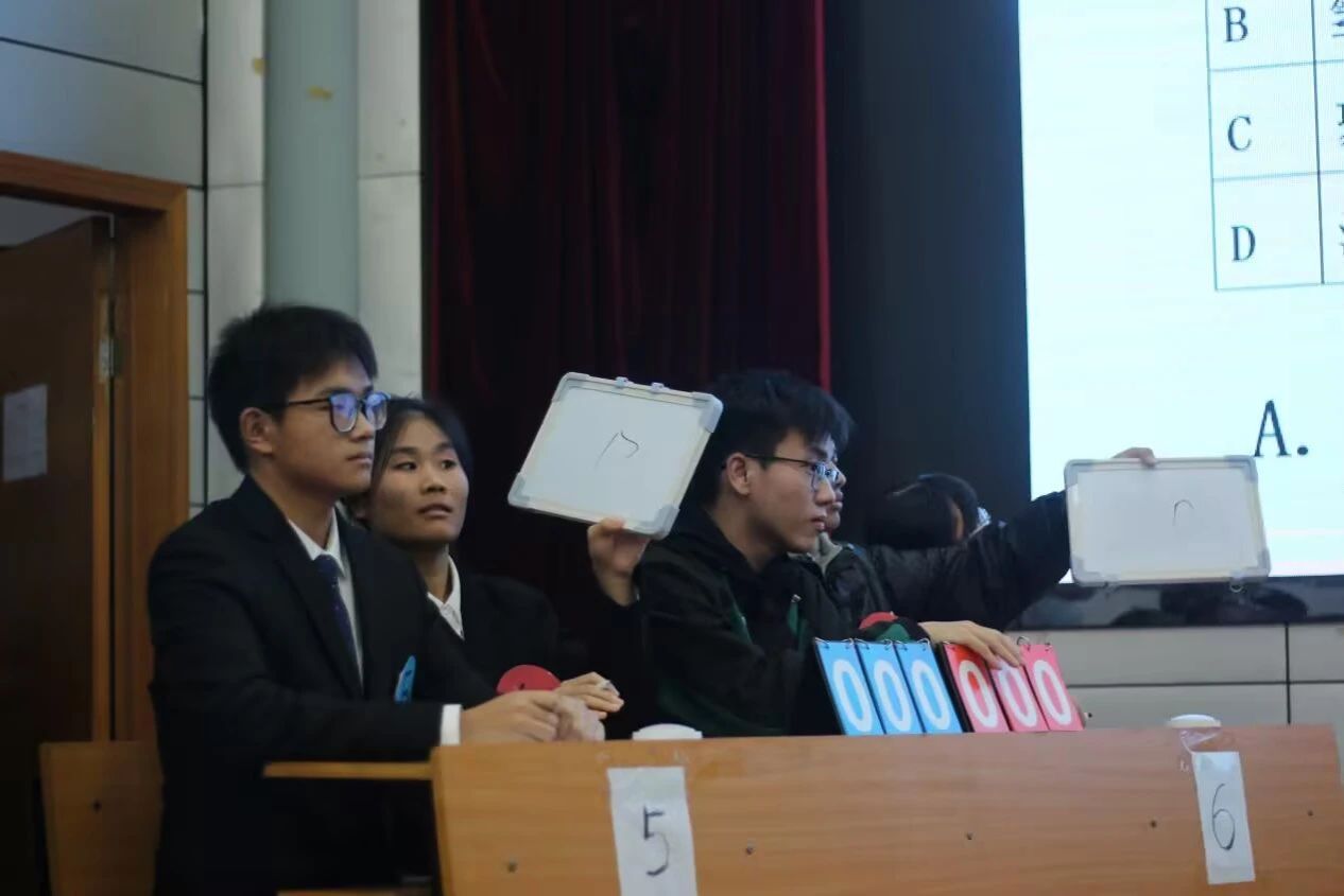 经过激烈的初赛角逐,最终有6支队伍脱颖而出。本次决赛分为必答题、抢答题和风险题三个环节。比赛现场气氛紧张而热烈,参赛者们个个精神饱满,准备充分。