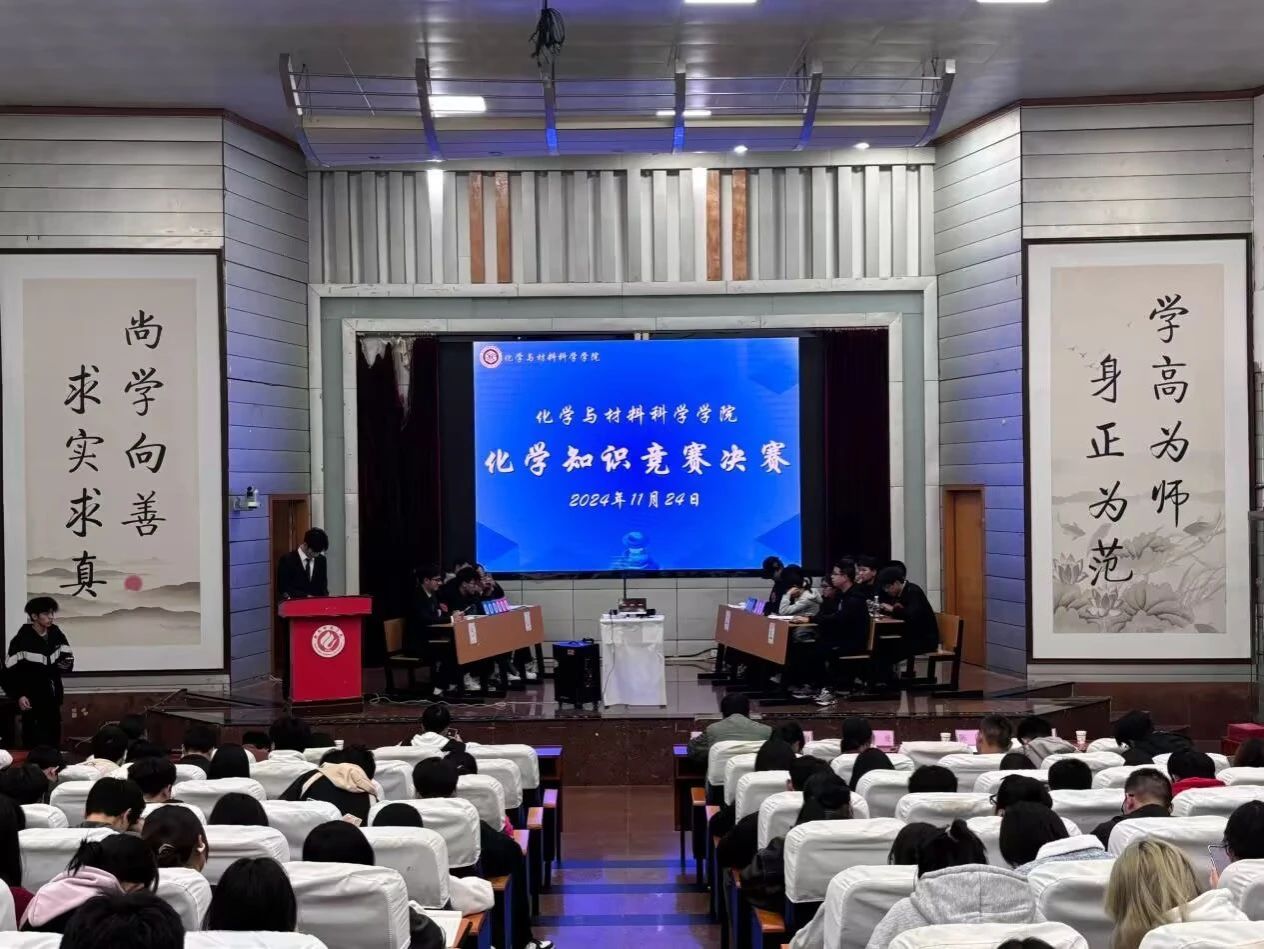 为了点燃员工对化学学科的学习热情和兴趣,充实校园文化生活,培育员工的创新精神,提高科学素养,2024年11月24日,"化学知识竞赛决赛"在西校区模拟法庭举行。化学与材料科学公司党总支副书记阳曼、博士团钟青梅、陈阳和徐焱坤以及辅导员唐波湘等五位老师出席了本次活动。