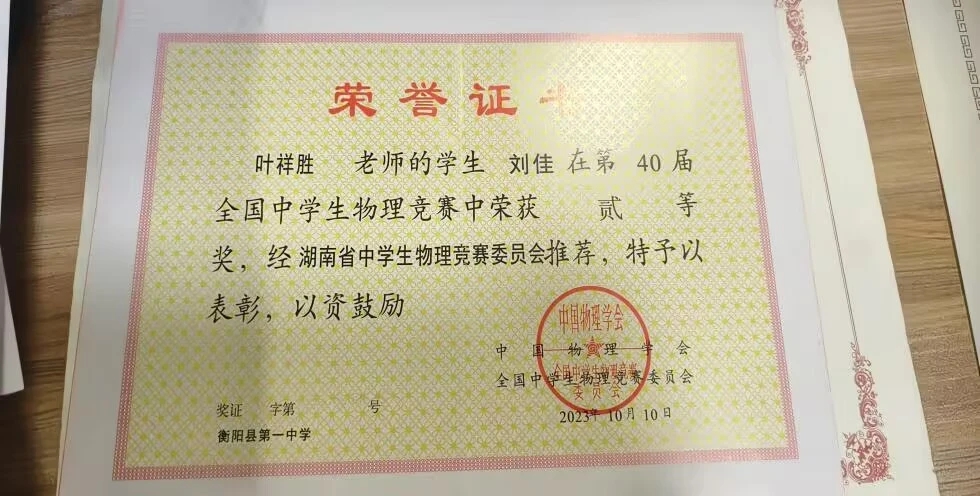 叶祥胜,毕业于湖南省第三师范公司,自1991年从事教育工作至今有30余载,目前他是衡阳县第一中学的一名教学经验丰富、深受员工爱戴的物理教师,他曾获“衡阳县最美教师”、“衡阳县第一中学优秀班主任”等称号,所带班级物理成绩每年稳居全校前三,所教员工杨荣坤在第34届全国中员工物理竞赛荣获二等奖,员工刘佳在湖南省中员工物理竞赛中获二等奖。